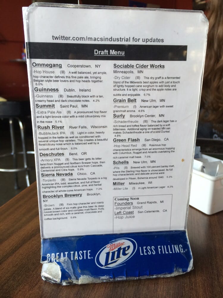 Mac's Industrial Sports Bar & Grill offers a vibrant and fun atmosphere, making it a solid choice for sports fans and food enthusiasts alike. Located in Minneapolis, MN, this establishment stands out for its diverse menu options, including vegetarian choices, along with great happy hour specials. Customers rave about the perfect curds, juicy burgers, and excellent beer selection. The staff is friendly and accommodating, adding to the overall positive dining experience. With outdoor seating, pool tables, and TV screens showing sports games, Mac's caters to a diverse crowd looking for a casual yet lively dining experience. Whether you're craving a classic Reuben sandwich or a flavorful mushroom and Swiss burger, Mac's Industrial Sports Bar & Grill is a must-visit spot for delicious food and good times.